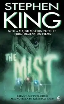 The Mist is a psychological horror novella by American author Stephen King. First published by Viking Press in 1980 as part of the Dark Forces anthology, an edited version was subsequently included in King's 1985 collection Skeleton Crew. In the story, the small town of Bridgton, Maine is shrouded in a dense mist that conceals otherworldly creatures. The protagonist and narrator David Drayton, who has taken refuge with his young son in a supermarket, tries to survive against not only the creatures of the mist, but also fanatical aggression from other survivors.[1] In The Mist, King addresses the themes of man-made fears and religious fundamentalism.