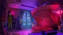 Pendulo included allusions to film history in The Next Big Thing's script and modeled the cast after celebrities and movie characters,[11] traditions at the company.[27] Among the films referenced in the script are Butch Cassidy and the Sundance Kid, Blade Runner, Some Like It Hot, Pirates of the Caribbean and American Beauty.[9][11][33] William A. FitzRandolph's production company, MKO, is an allusion to the Golden Age film studio RKO Pictures.[11] For the protagonists, Pendulo modeled Dan's appearance on actor Matt Dillon, and Liz's on actresses Charlize Theron and Scarlett Johansson.[11][34] Latiegui said that they tried to give Liz "friendly features and a sexy edge" that reflected her personality.[35] According to Europa Press, Big Albert was designed by combining football player Cristiano Ronaldo with Frankenstein's monster. The publication further reported that the Poet of Pain "unavoidably recalls" the Goonies character Sloth, and cited FitzRandolph's resemblance to reporter Miguel de la Quadra-Salcedo and to the X-Men character Beast.[11] In 2014, Monchan noted that the game's story is itself "like the X-Men" in its metaphorical exploration of racism, via the prejudice monsters face in the game's universe.[26]