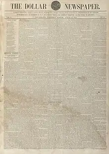 Poe originally offered "The Oblong Box" to Nathaniel Parker Willis for the New Mirror, but Willis suggested it was better suited for the Opal, a gift book edited by Sarah Josepha Hale.[9] It was first published on August 28, 1844, in the Dollar Newspaper in Philadelphia.[10] It was also published in the September 1844 issue of Godey's Magazine and Lady's Book,[10] also edited by Hale.[9] The story was also reprinted in The Broadway Journal, in the Saturday, December 13, 1845 edition.[11]