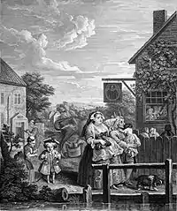 In the late 18th century Chester Road became notorious for highwaymen, with patrols being provided to protect those travelling along it at night. At this time descriptions state that the Old Red Lion was a small brick house with three trees in its forecourt, visited by William Hogarth (who portrayed it in the middle distance of his painting "Evening", with the foreground being Sadler's Wells), Samuel Johnson and Thomas Paine (who wrote The Rights of Man in the shade of the trees in its forecourt).