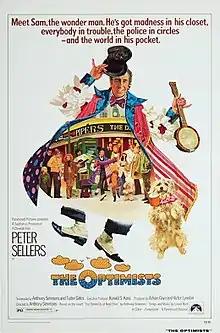 Variety wrote, "It all sounds like goo, and the film’s last half-hour verges perilously close. But even at its worst The Optimists is acceptable family fare, and for much of its first 80 minutes it engagingly achieves a sense of fantasy."[5] while The New York Times described the film as "the sort of old-fashioned excursion into sentiment that ought to warm the hearts of parents in search of that elusive piece of merchandise that goes under the name of good family entertainment. Peter Sellers, with a wardrobe of old music hall clothes, a talented but aged dog named Bella and a pram he pushes around London, plays the lonely, idiosyncratic old busker. And commendably, he submerges himself sufficiently in the part to allow old Sam to have a life of his own."[6]