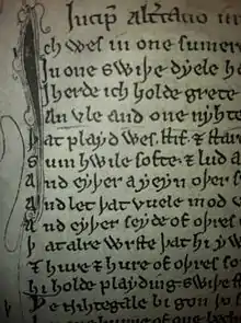 {{cite book}}: CS1 maint: multiple names: authors list (link) - Ker, N. R., ed. (1963). The Owl and the Nightingale: Facsimile of the Jesus and Cotton Manuscripts. EETS o.s. 251. London: Oxford UP. Facsimile edition