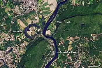 The Oxbow, also known as the Ox-Bow, is an extension of the Connecticut River, located in Northampton, Massachusetts. It is well-known for its appearance in the 1836 painting The Oxbow by Thomas Cole.