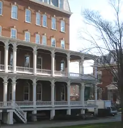 The Pavilion is the principal workplace of the Governor of Vermont, located at 109 State Street in Montpelier, capital of the U.S. state of Vermont. The building is built in the French Second Empire style, and houses the working offices, reception room, press briefing room, and living apartments of Vermont's governor. The term "The Fifth Floor" is sometimes used as a metonym for a governor's administration, or the Vermont governorship, which refers to the location of the governor's offices on the fifth floor of the Pavilion. The offices of two other elected statewide officials, the Vermont Attorney General and the Vermont State Treasurer, are housed in the Pavilion along with the Agency of Administration and the Vermont Historical Society and its museum.
