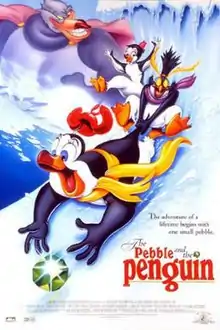 The Pebble and the Penguin is a 1995 animated film directed by Don Bluth and Gary Goldman. The film stars the voices of Martin Short, Jim Belushi, Tim Curry, and Annie Golden. Based on the true life mating rituals of the Adélie penguins in Antarctica, the film focuses on a timid, stuttering penguin named Hubie who tries to impress a beautiful penguin named Marina by giving her a pebble that fell from the sky and keep her from the clutches of an evil penguin named Drake who wants Marina for himself.