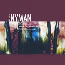 The Piano Concerto is a piano concerto based on the music Nyman wrote for The Piano organized into four phases (one movement). The saxophone is omitted ("Here to There" is given to the piano soloist) and the piano is accompanied by a traditional orchestra. The work is Nyman's second concerto, having previously written a saxophone concerto, Where the Bee Dances, for John Harle.