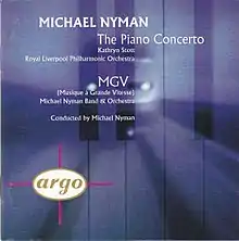 The Piano Concerto/MGV is the 23rd album by Michael Nyman, released in 1994. It contains two compositions, The Piano Concerto and MGV. The first is performed by Kathryn Stott and the Royal Liverpool Philharmonic Orchestra conducted by Michael Nyman, and the second is performed by the Michael Nyman Band and Orchestra with Michael Nyman at the piano.