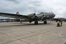She was featured as the fictional B-17F aircraft Mother and Country in the 1990 film Memphis Belle, she was painted on one side to resemble the older B-17F. She is credited in the 2012 film Red Tails. The Pink Lady was based at Paris - Orly Airport, France, just to the south of Paris, until its hangar was listed for demolition. In October 2006, she was stored for winter 2006–2007 in a hangar in St Yan, (Saône et Loire), France. Afterwards, she was based at Melun Villaroche (LFPM), south-east of Paris, where some Dassault (Mirage, Mystère or Balzac) aircraft made their first flights in the '80s. She has made some appearances, like at Melun in 2008 or the Paris Air Show in 2009. Her last flight from Melun Villaroche (LFPM) (her last base before retirement) was to Cerny-La Ferté Alais (LFFQ) (the airfield of Amicale Jean-Baptiste Salis) in March 2010.[1] As of 29 October 2011,[2] she is inside a new hangar where she will wait some years before flying again.[3]