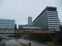 The Plaza (also known as the Sir John Moores Building and 100 Old Hall Street) is an 18-storey office complex in the L3 commercial district of Liverpool, England, United Kingdom.[1] At 65 m (213 ft), The Plaza is Liverpool's joint 14th tallest building. It dominates the city's skyline, especially since it has a length of over 125 m (410 ft) - which is two times the building's height.[1] Construction of The Plaza was completed in 1965, and the entire building was refurbished and renovated in 2005 to its current appearance. Office space in the building is currently owned and leased by Bruntwood (who also own ten other properties in the city).[1]