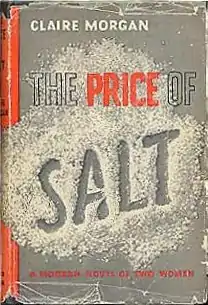 The Price of Salt (later republished under the title Carol) is a 1952 romance novel by Patricia Highsmith, first published under the pseudonym "Claire Morgan". Highsmith—known as a suspense writer based on her psychological thriller Strangers on a Train—used an alias as she did not want to be tagged as "a lesbian-book writer",[lower-alpha 1] and she also used her own life references for characters and occurrences in the story.