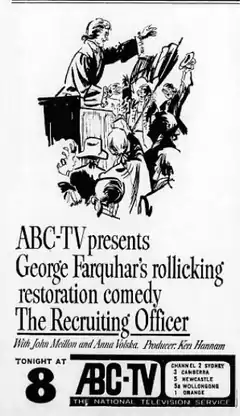 "The Recruiting Officer" is a 1965 Australian television production based on the famous play The Recruiting Officer, which was the first play ever performed in Australia.