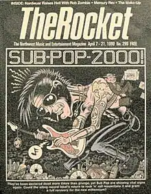 In April 1982,[3] Ferrigno quit the newspaper and Newman took over as editor. By the end of 1983, McChesney had also left. The Rocket continued to attract new writing talent, including Daina Darzin, Craig Tomashoff, Ann Powers, Jim Emerson, Gillian G. Gaar, Brent Lorang, Grant Alden, and Dennis Eichhorn. Matt Groening provided some cover art during this period. Bruce Pavitt began a monthly column called "Sub Pop U.S.A." devoted to the independent and underground music scene in Seattle and other parts of the U.S. Cover stars included The Young Fresh Fellows, who at the time of their Rocket feature had only performed live a dozen or so times. At the end of 1984, the newspaper printed a list of the “10 Hottest Northwest Bands”, which consisted of: Fastbacks, 54-40, D.O.A., Hosannah Choir, Girltalk, Ellipsis, Robert Cray Band, Metal Church, The Young Fresh Fellows, and The U-Men.[4]