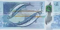 The Royal Bank of Scotland £5 note, also known as a fiver, is a banknote of the pound sterling. It is the second smallest denomination of banknote issued by The Royal Bank of Scotland. The current polymer note, first issued in 2016, bears an image of author Nan Shepherd on the obverse and a pair of mackerel on the reverse.