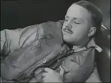 In the 2003 BBC documentary series Heroes and Weapons of World War II episode titled "The Man Who Designed the Spitfire" (Episode 2) at approximately 18 minutes in the film an RAF pilot is seen at rest in his dispersal hut with a large Saint stick-man logo on his flying gear (see image at right). He is perhaps showing some personal identification with Simon Templar's own war against Germany in the novella Arizona.[26]