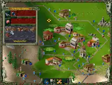 Whether playing in Campaign or Free Game mode, each game begins the same way; the player has one building, a warehouse/headquarters, in which are a set amount of raw materials and tools.[19] The basic gameplay revolves around serfs (the titular "settlers") who transport materials, tools and produce, and who populate and perform the requisite task of each building.[20] As the player constructs buildings and thus requires settlers to occupy them, the settlers automatically emerge from the warehouse as needed. As the settlement continues to grow in size, the warehouse's quota of settlers will eventually be reached, and the player will need to build an additional warehouse to generate more settlers.[21] At no point does the player directly control any individual settler - instead, general orders are issued (such as ordering the construction of a building), with the AI handling the delegation of orders to specific settlers.[20][22]