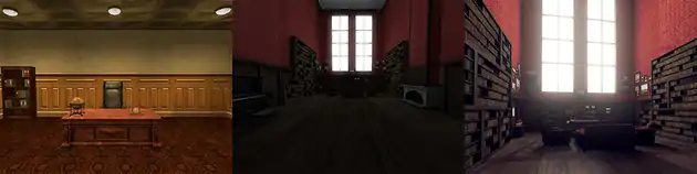 At this stage, the story splits off in numerous possibilities, based on the player's choices. When the player comes to an area where a choice is possible, the player can opt to follow the narrator's directions or perform the opposing action. The initial decision is a set of two open doors. The narrator notes that Stanley traveled through the leftmost door, but this has not yet occurred.[lower-alpha 1] The narrator takes the player's choices into account, reacting with new narration or attempts to return the player back to the target path if he is contradicted. For example, if the player were to follow the narrator's directions and pass through the leftmost door, the story of the missing employees proceeds. Alternatively, the player can choose the rightmost door, causing the narrator to adjust his story. In this case, he will urge the player to return to the "proper" path, although the player can continuously disobey the narrator, resulting in other adjustments to the story.[1] In some instances, the narrator breaks the fourth wall when reacting to the player's decisions.[3]