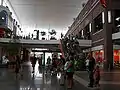 The Streets at Southpoint was designed and developed by Urban Retail Properties with an old-fashioned Main Street concept. RTKL Associates Inc. served as the architect and also provided environmental graphic design services, incorporating the logo design throughout the development, reinforcing the shopping center's identity.[8] The mall is a "hybrid mall," combining a traditional enclosed mall with an outdoor pedestrian wing.[9] A 70-foot glass wall separates the two portions of the mall.[10] The main stretch of the enclosed portion of the mall was dubbed Southpoint Boulevard, with each of the shops sporting a signature façade and entryway in an effort to create the Main Street feel. Other details adding to the design include imitation manhole covers, street lights, and bronze statues of children playing.[11]