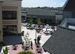 Construction on the project began in 2003.[10] The Meier & Frank opened in early October 2004,[11] while other stores finished construction later that month.[7][12] The grand opening for the 386,000 square feet (35,900 m2) shopping complex was November 6, 2004.[13] The 55-store complex is designed to resemble a standard Main Street style shopping district with open air, free-standing stores complete with parallel parking on the streets within the complex.[7][14] When it opened it was the first of the lifestyle centers to open in the Portland metropolitan area.[15]