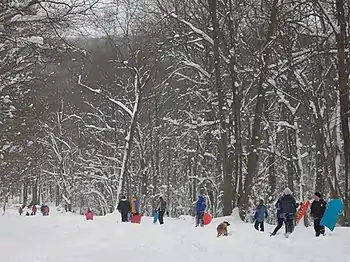 The Tourne is a county park in Morris County, New Jersey. The park covers 547 acres (2.2 km²) in four different municipalities, Mountain Lakes, Denville, Boonton Township, and Parsippany. It includes bike trails, equestrian trails, hiking trails, picnic areas and play areas. Sledding and cross-country skiing are also allowed in the winter. Hiking and biking are the most common activity at this park with several miles of gravel trails that climb a small mountain that has scenic views of the Rockaway Valley and east to New York City, which locals dubbed "The New York Overlook". The top of The Tourne is a great place to stop after a hard hike or ride and also has a 9/11 memorial to honor the fallen.