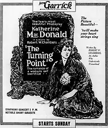 The Turning Point is a 1920 American drama film directed by J.A. Barry, written by Robert W. Chambers, and starring Katherine MacDonald, Leota Lorraine, Nigel Barrie, William V. Mong, Bartine Burkett, and William Clifford. It was released on February 2, 1920, by First National Exhibitors' Circuit.[1][2][3]
