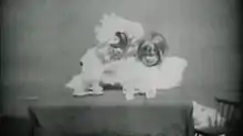 The Twins' Tea Party is an 1896 British short silent actuality film, produced and directed by Robert W. Paul, featuring twin girls squabbling over a piece of cake at a tea party. One girl slaps the other a few times, arguing over the cake. Then, when the other girl cries, the first girl feels sorry and makes up, hugging and kissing her. The film, "was one of the very first 'facials'," which according to Michael Brooke of BFI Screenonline was, "a popular genre in early British cinema that exploited what to 1896 audiences was the astonishing novelty of being able to see moving images of recognisable people in medium close-up as they reacted to a particular situation." John Barnes, author of The Beginnings of the Cinema in England, adds that, "this charming one-shot film of two infant girls reluctantly sharing tea was one of the most popular items exhibited in R.W. Paul's programmes at the Alhambra Theatre in 1896."[1]