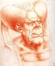 Grotesque Head, Leonardo da Vinci. Red chalk on paper, 17.2 × 14.3 cm