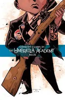 The Umbrella Academy: Dallas is the second comic book limited series of The Umbrella Academy created and written by Gerard Way and illustrated by Gabriel Bá. It is the follow-up to Apocalypse Suite. The series ran for six issues from November 2008 to April 2009. Tony Ong provided back cover art for this series only. A trade paperback was released on September 30, 2009. The story revolves around Number Five and his association with the Kennedy assassination.