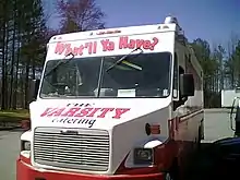 The enterprise has since expanded to Athens, Kennesaw, Norcross, Alpharetta, and Dawsonville.[9] The first Athens location opened in 1932 at the corner of East Broad Street and College Avenue, but was closed around the late 1970s. Another Athens location opened further west on West Broad Street near Milledge Avenue in the 1960s. The latter location is scheduled for demolition in 2021. The Varsity location in Athens closed in June 2021,[10] though the company hinted that it might return to Athens.[11][12] The Alpharetta location closed on February 1, 2016, and the building has since been demolished. The Varsity, Jr., located in northeast Atlanta, was the only other location of the chain to offer curbside service. The Varsity, Jr. closed in August 2010, having been at that location for more than 40 years, after the city of Atlanta did not approve the chain's plans to replace that building. The plans for the new Varsity, Jr. were instead used for the new location in Dawsonville. The restaurant offers catering services to the metro Atlanta region for both corporate and non-corporate functions, going as far east as Conyers and Stone Mountain, Georgia.