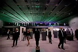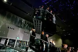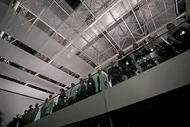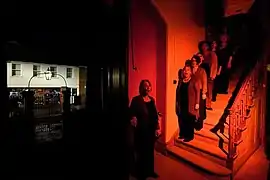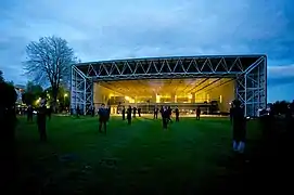 The Observatory was a site-responsive piece presented as part of the Norfolk & Norwich Festival and created as part of a partnership with the Sainsbury Centre for Visual Arts (SCVA) and the University of East Anglia (UEA). The piece was an exploration of humankind's relationship with space - and our gradual attempts to understand and explore it with the poetic, the scientific and the musical. Weightlessness, distance, fear of the unknown, infinity and astronomical geometry inspired this piece which was staged in and around the SCVA. The SCVA provided a futuristic background for this piece which informed the design of the show – and also the opportunity for the audience to experience this iconic building quite differently. There was a choir of 200 and an audience of 750 across 3 shows.[7]