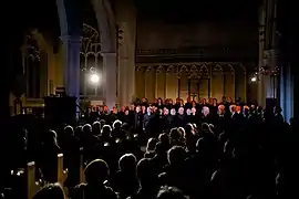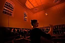 This piece was performed on 23 January 2016 in St. Andrews Hall, Norwich. It was the last show delivered as part of the 'Singing the City' programme, and it was a seated performance in a well-known Norwich building, which was used in an unusual way. It marked the turning of the year with choral music that took us from the dark of winter to the promise of spring, exploring the themes of dark and light, hibernation and awakening. This was the Project's most successful self-produced show to date, with two sold-out performances and the largest winter choir assembled.[7]