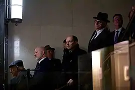 In the colonnade.