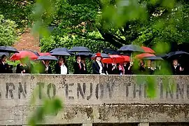 Norwich Over the Water was a promenade outdoor choral piece around the River Wensum and Norwich University of the Arts quad in Norwich's historic centre of the textile and dyeing industries. Taking place on a Saturday afternoon, the piece started at The Octagon Chapel and processed across bridges to a finale in the quad of Norwich University of the Arts. There was a choir of 110 and an estimated audience of 2,500.[8]