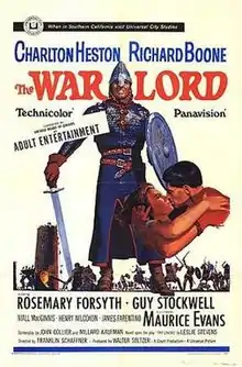 The War Lord is a 1965 American drama historical film directed by Franklin J. Schaffner and starring Charlton Heston. The film, which concerns medieval warfare and culture in 11th-century Normandy, is an adaptation of the play The Lovers by Leslie Stevens. The film also features Richard Boone, Rosemary Forsyth, Guy Stockwell, Maurice Evans, Niall MacGinnis, Henry Wilcoxon and James Farentino, with Jon Alderson, Allen Jaffe, Sammy Ross, and Woodrow Parfrey.[2][3][4][5]