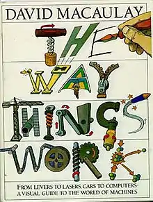 The Way Things Work is a 1988 children's book by David Macaulay with technical text by Neil Ardley. It is an entertaining introduction to everyday machines, describing machines as simple as levers and gears and as complicated as radio telescopes and automatic transmissions. Every page consists primarily of one or more large diagrams describing the operation of the relevant machine. These diagrams are informative but playful, in that most show the machines operated, used upon, or represented by woolly mammoths, and are accompanied by anecdotes of the mammoths' (fictive) role in the operation. The book's concept was later developed into a short-lived animated TV show (produced by Millimages[1] and distributed by Schlessinger Media), a Dorling Kindersley interactive CD-ROM (including a spin-off pinball game), and a board game. A family "ride" involving animatronics and a 3-D film based on the book was one of the original attractions at the San Francisco Metreon, but closed in 2001.