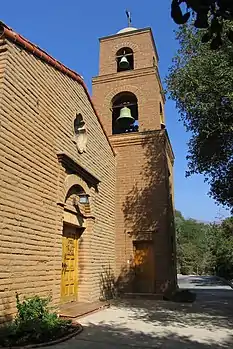 Fascinated by California missions, Thompson Webb took the mission at San Juan Capistrano as the inspiration for the Vivian Webb Chapel, a monument to both his religious faith and his love for his wife. In 1937, with the help of a small cement mixer and two hired workers, Thompson began making 60-pound (27 kg) adobe bricks. After a year of turning out more than 10,000 mission-style bricks and drying them in the sun on the school's tennis courts, he began building the chapel's foundation in 1938, and laid the chapel's first brick in 1939. He built the walls of the chapel with the help of students, parents, visitors, prospective students and even the governor of Tennessee.[14]