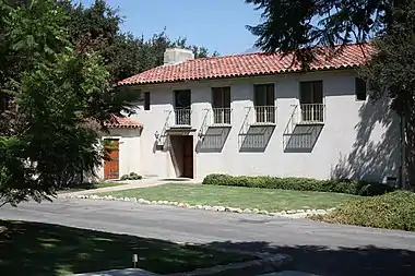 The parents of Thomas Jackson donated the Thomas Jackson Library to the school as a memorial to their son, who graduated from Webb in 1930 but died of a heart attack while in his sophomore year at the California Institute of Technology. The library, dedicated in 1938, was designed by acclaimed architect Myron Hunt, who also built the Rose Bowl, the Pasadena main library, and Thompson and Vivian Webb's campus home. The building, in a Mediterranean style with small balconies on the second floor and a mezzanine balcony around the interior, won an Honor Award from the American Institute of Architects soon after its dedication.[16] From 1937 to 1948, Vivian Webb helped each graduating senior design and carve a wooden plaque bearing his name, his graduating year and some symbol of his interest. These plaques line the library's walls. On the library's heavy oak doors, Vivian Webb herself carved the names of the 158 boys who graduated before 1937. The library is now used as a formal reception room.