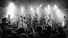 The White Screen (Hebrew: המסך הלבן) is an Israeli indie pop-rock cult band .[1] The band consists of cousins Gabriel and Gilbert Broid, Noa Ayali, Nimshi, Udi Naor and former drummer Stav Ben Shahar. The band is one of Israel's most interesting cult bands with three albums under their belt, the latest of which, Sex, Drugs & Palestine, was recognized as an iconic album with all vinyl copies being sold out. The band has been described as a retro 1980s, punk band.[2][3][4][5]