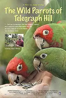 The Wild Parrots of Telegraph Hill is a 2003 documentary film directed, produced, and edited by Judy Irving. It chronicles the relationship between Mark Bittner, an unemployed musician who lives rent-free in a cabin in the Telegraph Hill-neighborhood of San Francisco, and a flock of feral parrots that he feeds and looks after. Bittner also wrote a memoir about his experiences with the parrots, which shares the title of the documentary, but has the added subtitle: A Love Story...with Wings.[1]