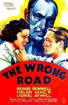 The Wrong Road is a 1937 American crime drama film directed by James Cruze and starring Richard Cromwell, Helen Mack, and Lionel Atwill. The film is now in the public domain.