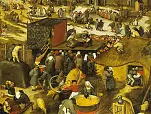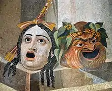 Participation in the city-state's many festivals—and mandatory attendance at the City Dionysia as an audience member (or even as a participant in the theatrical productions) in particular—was an important part of citizenship.[10] Civic participation also involved the evaluation of the rhetoric of orators evidenced in performances in the law-court or political assembly, both of which were understood as analogous to the theatre and increasingly came to absorb its dramatic vocabulary.[11][12] The Greeks also developed the concepts of dramatic criticism and theatre architecture.[13][14][15] Actors were either amateur or at best semi-professional.[16] The theatre of ancient Greece consisted of three types of drama: tragedy, comedy, and the satyr play.[17]