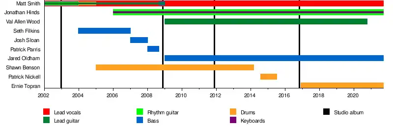 - Matt Smith – lead vocals (2002–present), keyboards (2002–2008), lead guitar, bass (2002–2009)