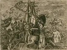 Theodor de Bry (also Theodorus de Bry) (1528 – 27 March 1598) was an engraver, goldsmith, editor and publisher, famous for his depictions of early European expeditions to the Americas. The Spanish Inquisition forced de Bry , a Protestant, to flee his native, Spanish-controlled Southern Netherlands. He moved around Europe, starting from his birth on the city of Liège in the Prince-Bishopric of Liège, then to Strasbourg, Antwerp, London and Frankfurt, where he settled.