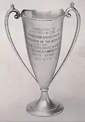 McElroy won contests for receiving speed code and setting records when he was 21 years old.[10] He was the first radio receiver to record a speed of more than 50 words per minute.[11] For his accomplishments McElroy was awarded a silver cup that was inscribed "Presented to the Champion Radio Code Operator of the World."[12]