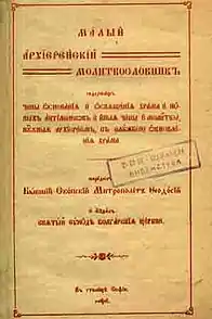 As result he was rehabilitated and between 1901 and 1906 served as bishop of the Plovdiv eparchy, and then in the Bachkovo Monastery and in the Rila monastery. In 1910 he tried again to run for Metropolitan of Skopje, whose position was then vacant, but he was refused, despite the pro-Exarchate positions he demonstrated in the press.[18] During 1913 he participated on the Christianization of the Pomaks in the Rhodopes, a mission held from the Bulgarian Exarhate and IMORO.[19] Completely repenting of his Catholic aspirations, he wrote the pamphlet The Orthodox Church and Catholic Propaganda, which the Synod printed and used in the struggle against the Uniate movement in 1914. During this period he served in Sofia, where in November 1915, when the Bulgarian army defeated Serbian troops in Macedonia, he performed a solemn prayer on the occasion of the Victory Day.[20] Bishop Theodosius also led the short-lived eparchy of Gyumyurdzhina, (Komotini) between 1915 and 1919, when the area was part of Bulgaria. He spent the last years of his life in Sofia in literary activity - writing books and translations of foreign literature.[21]