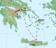 Plutarch's Life of Theseus makes use of varying accounts of the death of the Minotaur, Theseus' escape, how Ariadne, daughter of King Minos, fell in love with Theseus, and his betrayal of her.[lower-roman 1]
