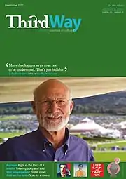 Third Way was a British current affairs magazine written from a Christian perspective. It called on well-known Christian thinkers and writers (its columnists include high-profile journalists, clergy and BBC comedy writers) to comment on news issues, much as the New Statesman or Spectator calls on those from left or right. According to the Times, it was 'noted for giving a serious Christian perspective on topics ranging from the Bible to politics, environment to the arts'.[1] The magazine was not affiliated with either the minor British political party Third Way, or with the centrist 'Third Way' policies of Tony Blair and Bill Clinton.