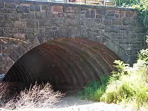 The Thirty-third Street Bridge in Philadelphia carries Thirty-third Street (U.S. Route 13) over the former course of Master Street in the Brewerytown section of North Philadelphia, near Fairmount Park. The bridge was built in 1901 with an unusual skewed arch, and listed on the National Register of Historic Places in 1988. Ashlar, or dressed stone, covers the exterior of the arch, but the unusual skewed ribs are made of brick. The underpass is now inside an industrial area and normally closed even to foot traffic. The tracks of the former Pennsylvania Railroad are located just to the north and pass under a large modern bridge on Thirty-third Street.[2]