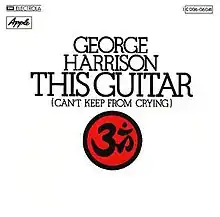"This Guitar (Can't Keep from Crying)" is a song by English rock musician George Harrison, released on his 1975 studio album Extra Texture (Read All About It). Harrison wrote the song as a sequel to his popular Beatles composition "While My Guitar Gently Weeps", in response to the personal criticism he had received during and after his 1974 North American tour with Ravi Shankar, particularly from Rolling Stone magazine. An edit of "This Guitar" was issued as a single in December 1975, as the final release by Apple Records in its original incarnation. The single failed to chart in either the United States or Britain.