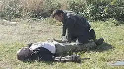 ![]() Merle is put down by his brother, Daryl, following his sacrificial death by the hands of The Governor. | |