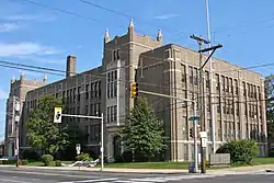 Universal Creighton Charter School is a historic school located in the Crescentville neighborhood of Philadelphia, Pennsylvania. It is currently in use as a charter school. The building was designed by Irwin T. Catharine and built in 1929–1930. It is a three-story, eight-bay, brick building on a raised basement in the Late Gothic Revival style. Additions were built in 1931 and 1954. It features entrances with arched stone surrounds, brick piers with terra cotta capitals, and a crenellated battlement with four small towers.[2]